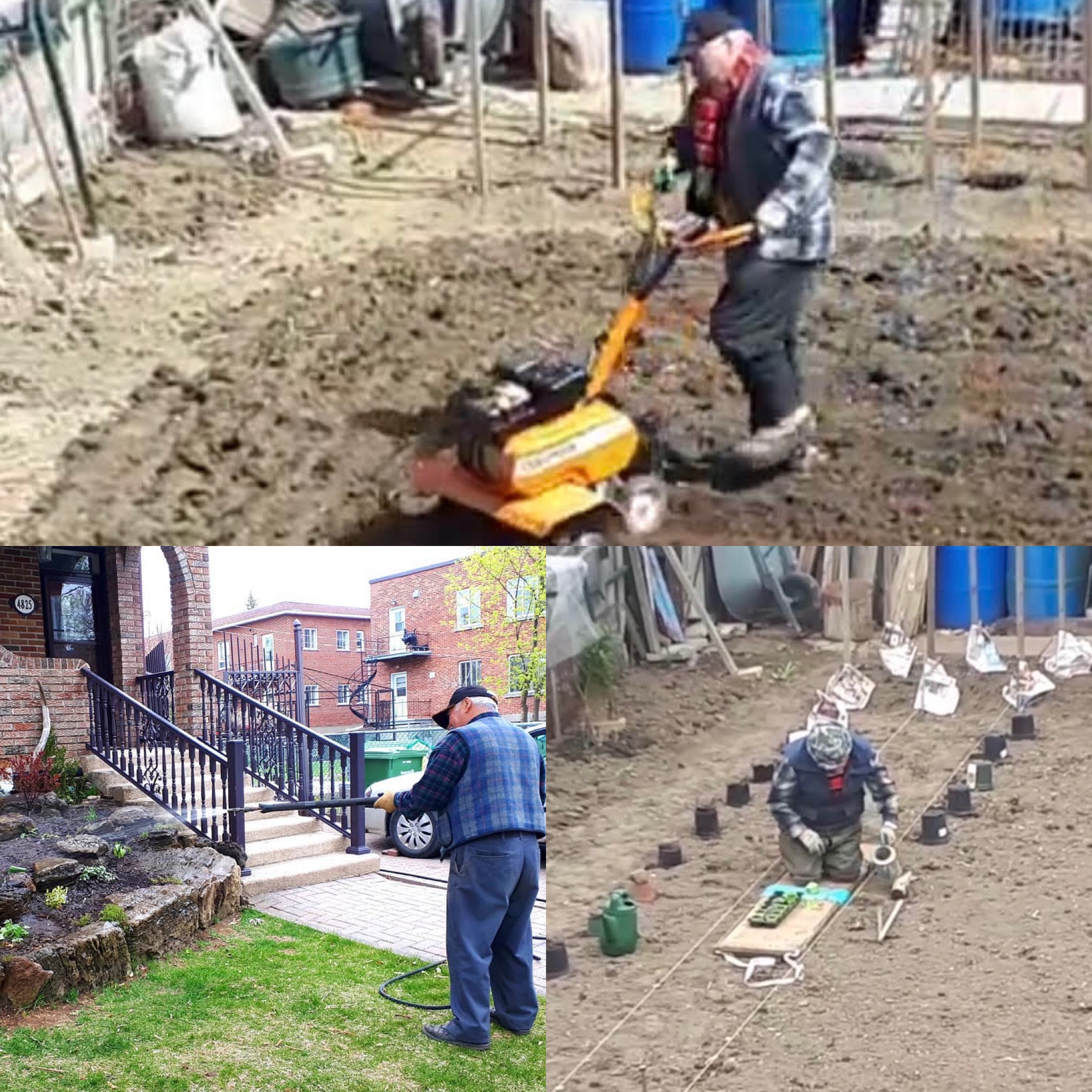 He starts his seeds in February inside his garage – which he’s transformed into a greenhouse of course. In early April, before the last frost – you can find him out there turning the soil with his homemade “tiller” which Lydia believes he custom-fashioned out of an old snow-blower, McGyver style!