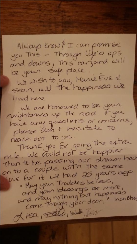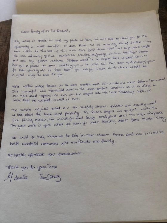 A few days later, while we're waiting for the mortgage approval process - Marie-Eve notified me that she and Sean had just received a letter in their mailbox, handwritten from the sellers!